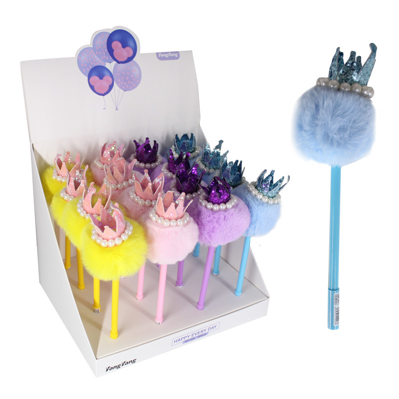 Ручка гелева з подвесткой "Хутровий з короною і бісером",синя,0,38 мм 020214